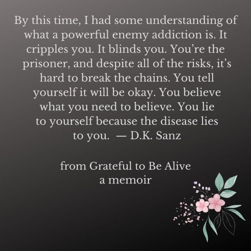 My memoir about recovery from addiction and illness is complete and in the final editing stage. Here’s an unedited excerpt to give you an idea of what’s coming: